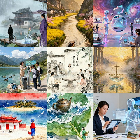 为积极探索人工智能与专业教学的融合创新,近日,人文与旅游学院分工会面向学院全体教师发起举办了“指尖万象 ,AI赋新韵”AI创意绘画征集活动。本次活动以“零门槛、重创意”为原则,鼓励教师大胆尝试,运用AI绘图工具重新诠释专业内涵,以科技画笔焕发学科新魅力,为学院智慧文旅建设注入创新动能。